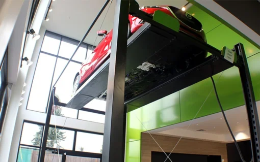 Auto dealerships are always looking for an edge when it comes to their displays. The newest vehicles, or the ones most likely to attract customer attention, need to be prominently shown and visible from the street. The narrow dimensions of this lift, as well as its sleek, low-sheen black coloration, allow it to blend seamlessly into busy lots and showrooms. This way, the vehicles are all that people notice. Its 12-foot high rise is also perfect for getting cars seen from over the highway or across the street. Designed originally for dealerships of any size, this lift is perfect for anyone desiring to gain an edge over the competition. Our job is to help make your inventory look its best, so you can increase your dealership’s foot traffic and close more deals.