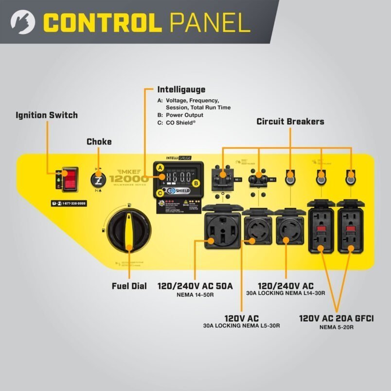 The Champion Power Equipment 201160 MKE 12000 Portable Generator is designed with your safety and convenience in mind. Owning this rugged 12,000-watt generator means the next time there’s an outage, the power in your house stays on. For projects, the massive 717cc Milwaukee Series V-Twin Engine has what it takes to handle the multiple power tools and large equipment you need to get the job done.